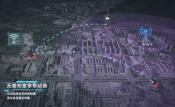海能達(dá)RoIP寬窄互通解決方案結(jié)合了Hytera HyTalk Pro和PDT集群系統(tǒng)。其中,PDT 集群系統(tǒng)實(shí)現(xiàn)窄帶專網(wǎng)集群通信,Hytera HyTalk Pro實(shí)現(xiàn)IP 網(wǎng)絡(luò)下的寬帶專網(wǎng)集群通信。通過RoIP解決方案,多模智能對(duì)講機(jī)實(shí)現(xiàn)在寬窄系統(tǒng)下自動(dòng)切換網(wǎng)絡(luò),時(shí)刻保證一對(duì)一和一對(duì)多的高質(zhì)量關(guān)鍵語(yǔ)音業(yè)務(wù),以及通過3G、4G、WLAN和專用LTE網(wǎng)絡(luò)進(jìn)行視頻通話、視頻上拉等大容量高速率的多媒體數(shù)據(jù)業(yè)務(wù),從而實(shí)現(xiàn)補(bǔ)雙盲(忙)、融視頻。